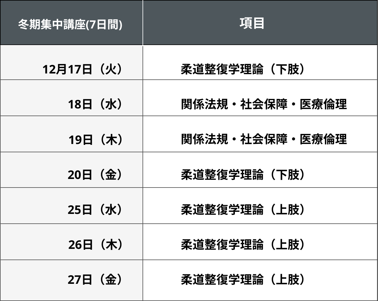 | 冬期集中講座 (7日間) |